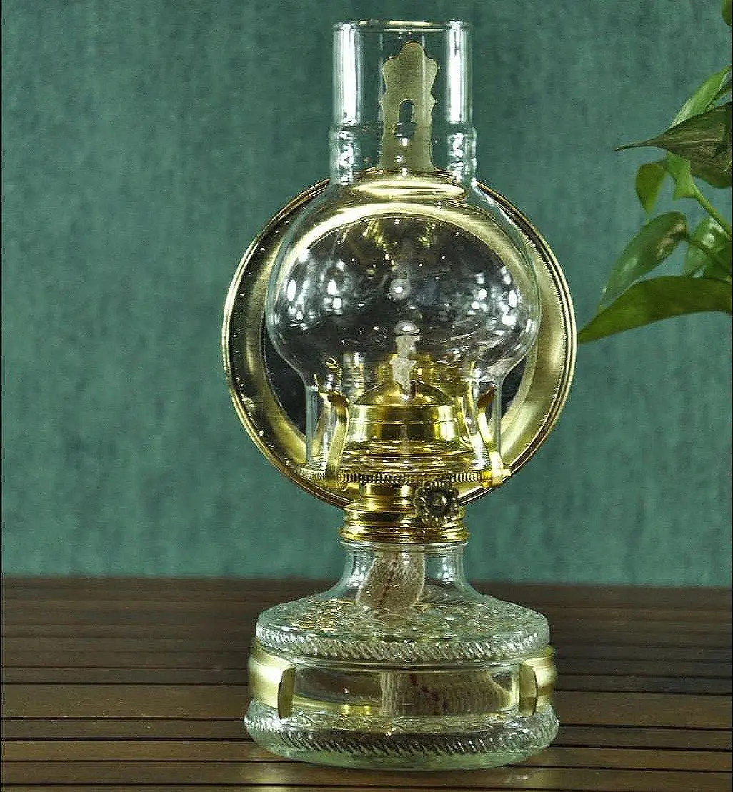 Nostalgic desktop wide wick high brightness high-temperature resistant glass cover kerosene lamp windproof lamp