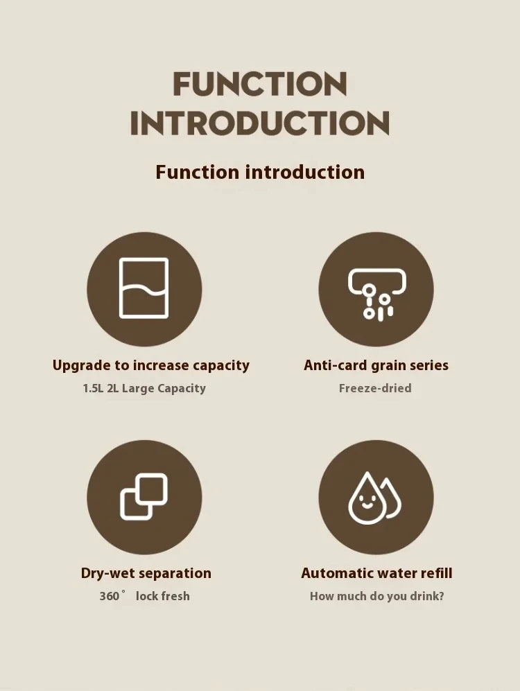 Large capacity design, suitable for different sizes of pets, reduce the trouble of frequent replenishment. Especially suitable for busy pet owners, so that you can go out with peace of mind.