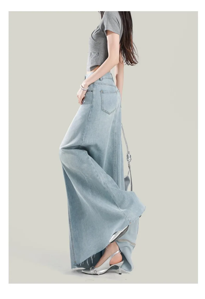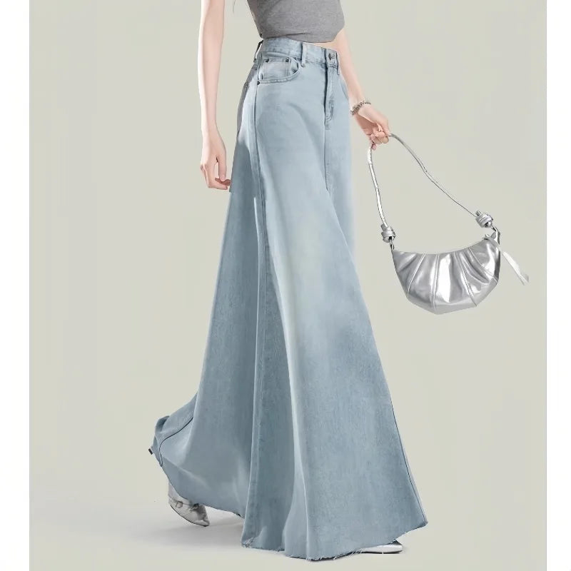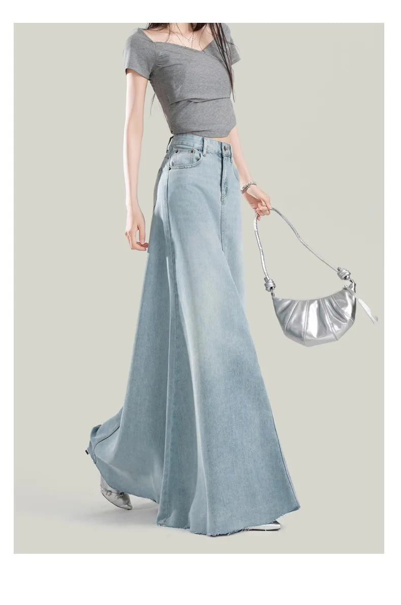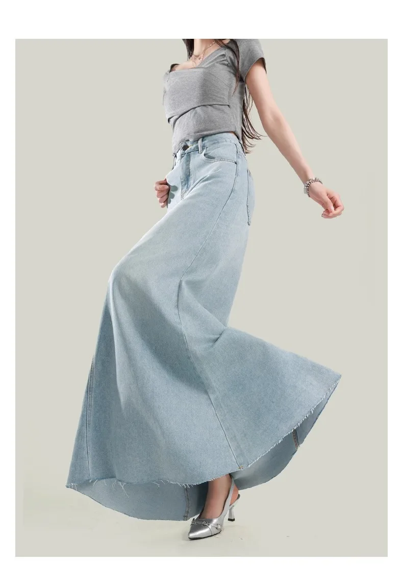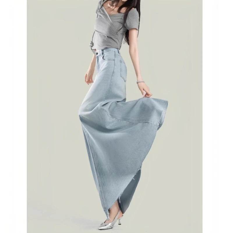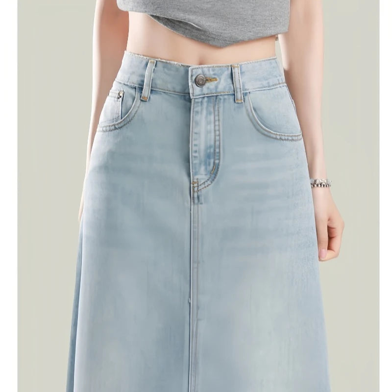 Korean Fashion High Street Commuter Light Blue Denim Maxi Skirt Women Spring Summer A-line High Waisted Bodycon Jeans Long Skirt