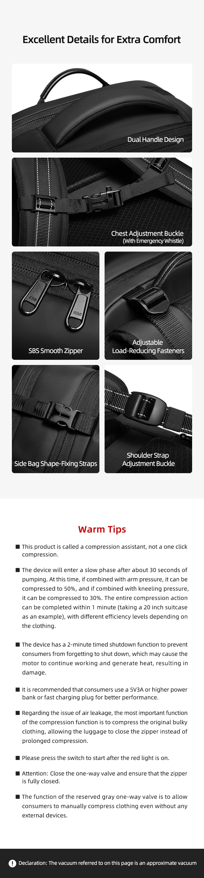 Comes with built-in functions, one click compression function, no need to purchase a pump yourself