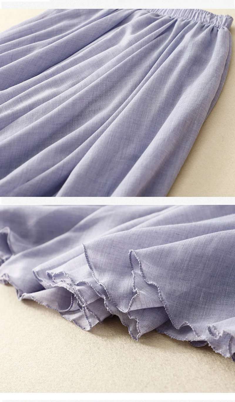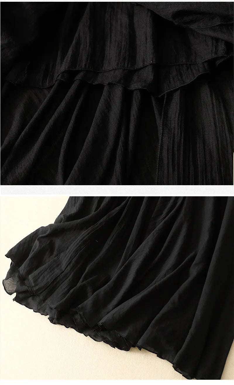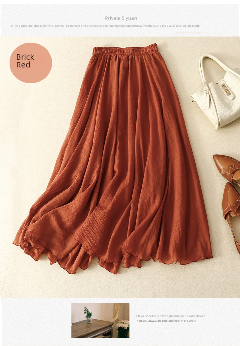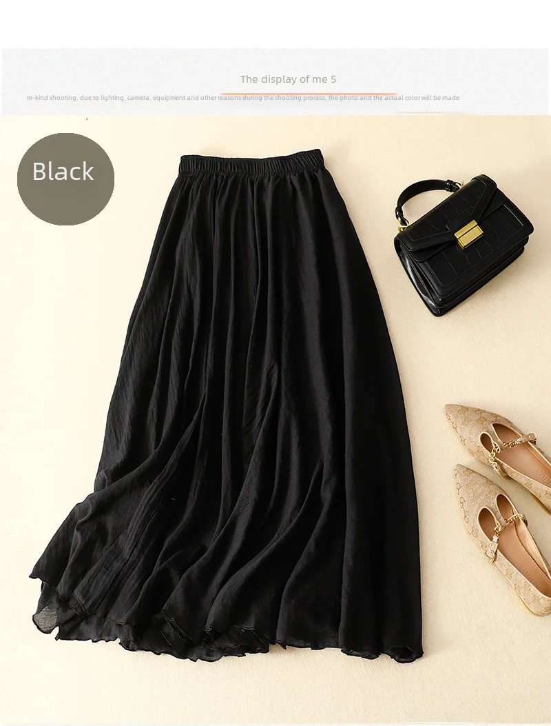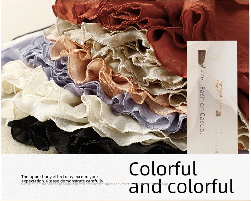 Slim Cotton Leaf Edge Double Layer Half Skirt Loose Waist.