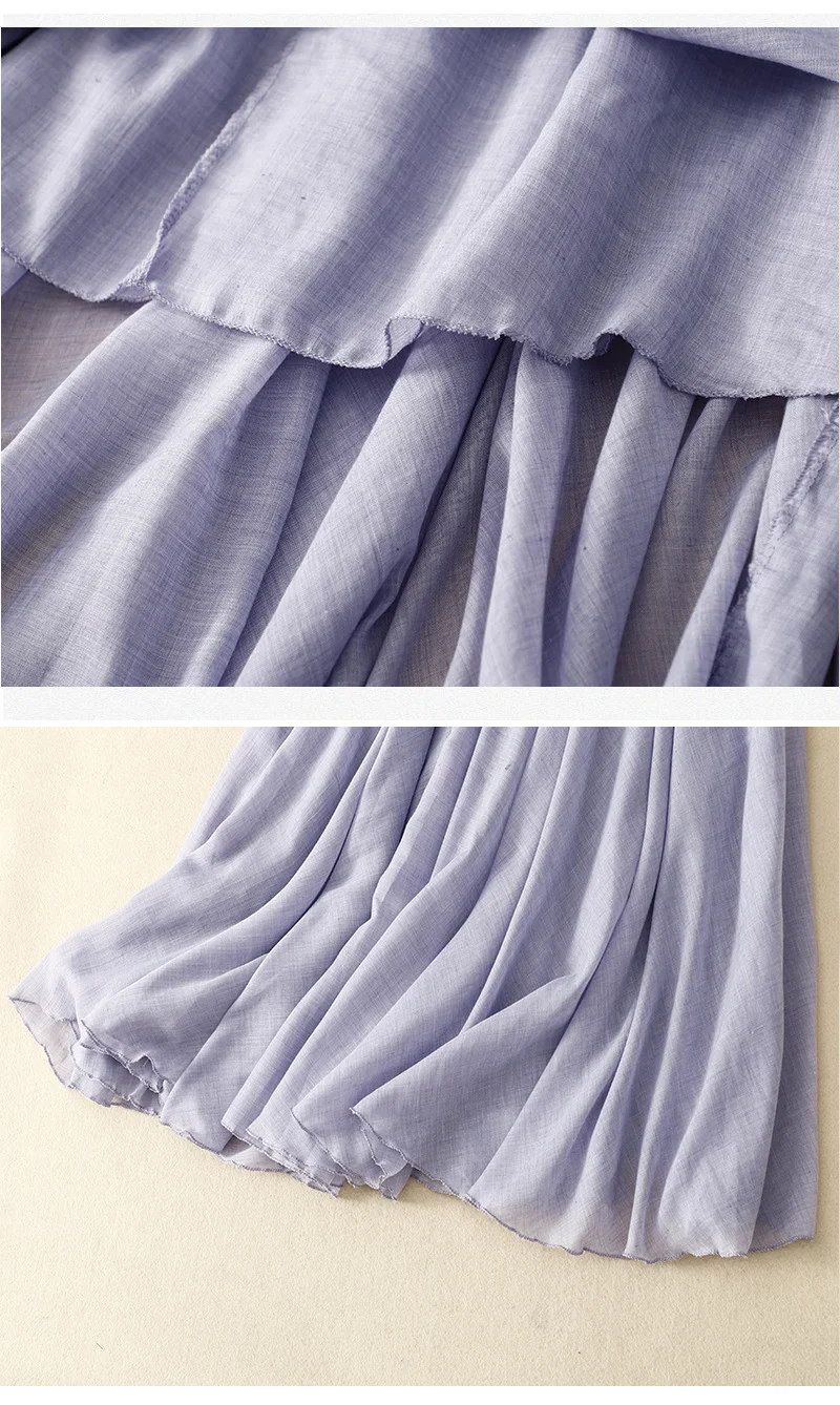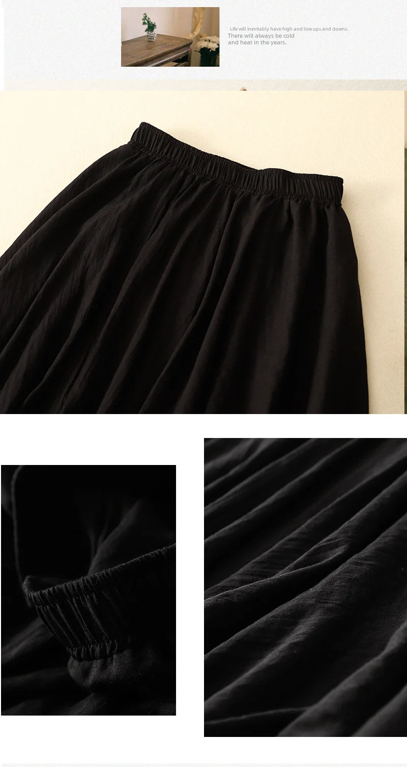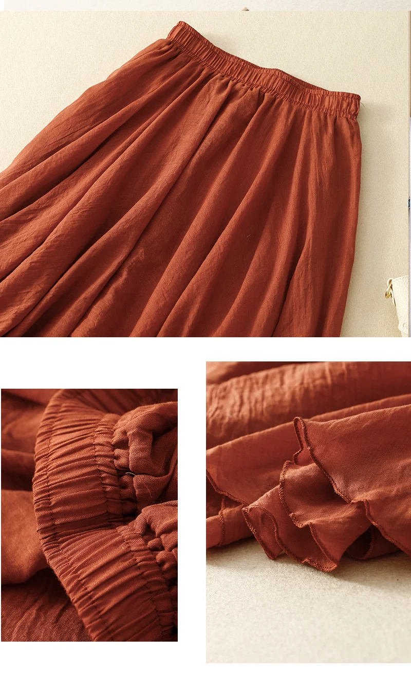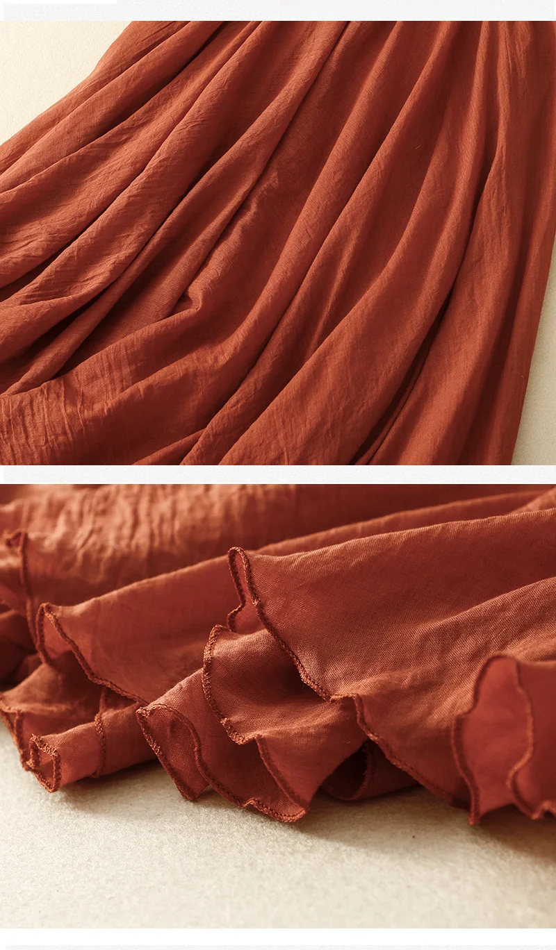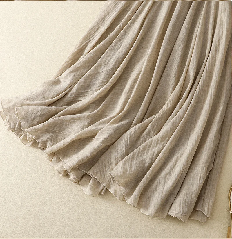 Slim Cotton Leaf Edge Double Layer Half Skirt Loose Waist.