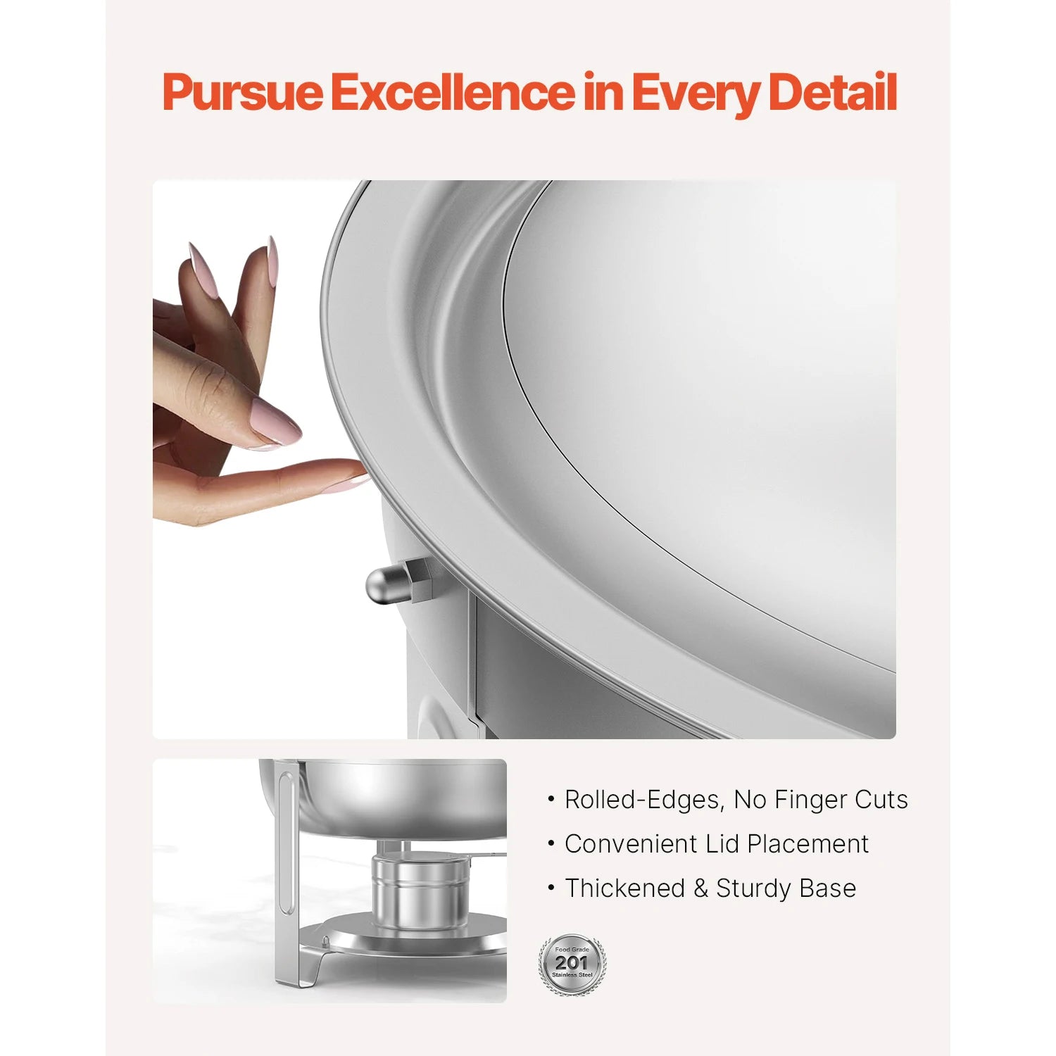 Exquisite Craftsmanship: Made from premium stainless steel, this chafer is both durable and easy to clean. The rolled edges ensure there are no sharp edges, while the convenient lid placement and sturdy base make it both functional and stylish