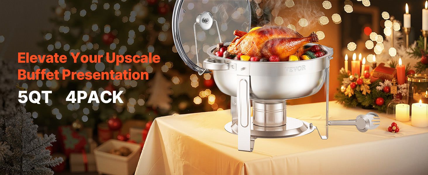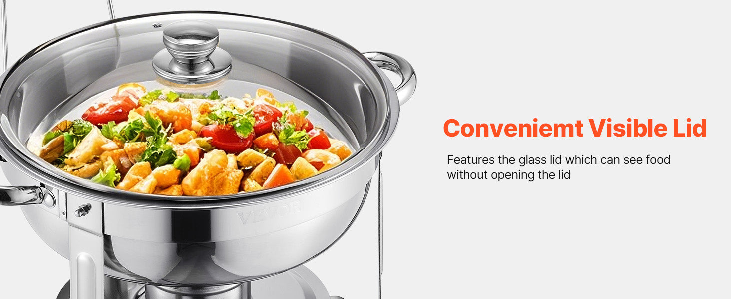 Ample 5QT Capacity: With a large capacity, this buffet chafer can hold multiple servings of your favorite dishes. The included multifunctional meal clip makes it easy to serve pasta, steak, soup, chicken, and more