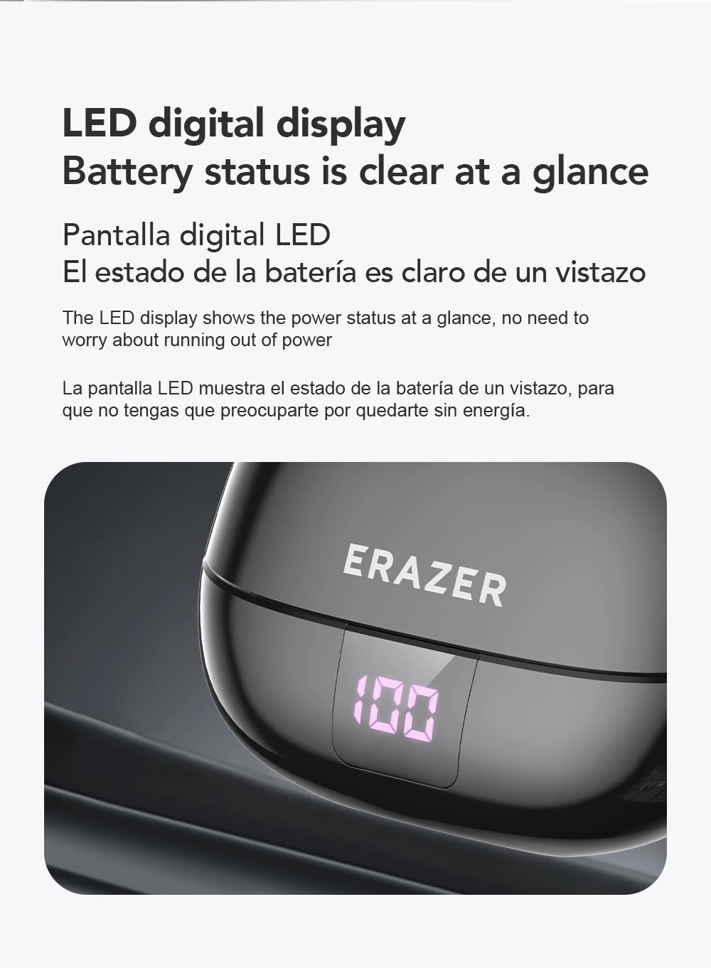 The LED display shows the power status at a glance, no need toworry about running out of power.