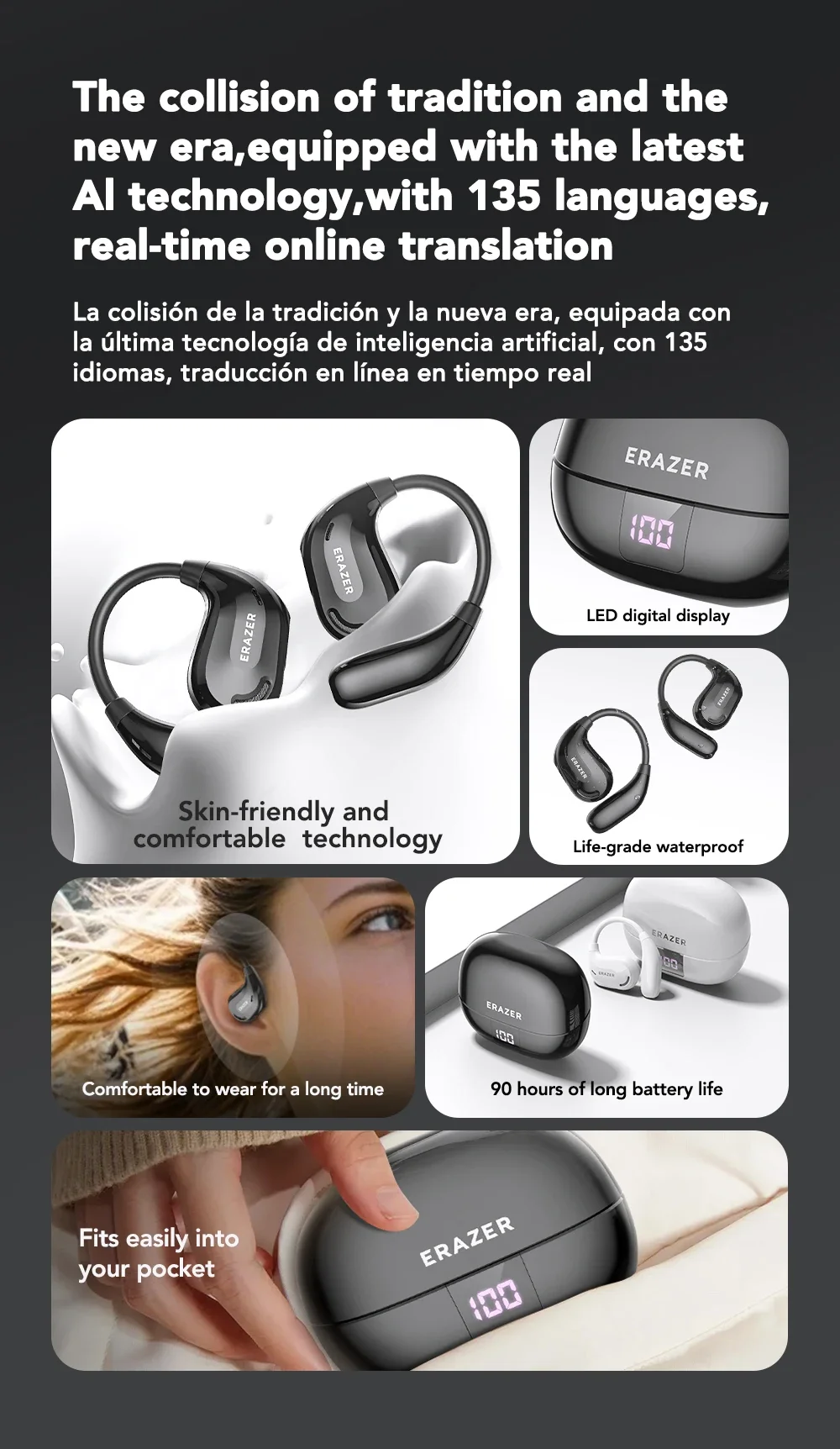 10.The collision of tradition and the new era, equipped with the latest Al technology, with 150 languages, real-time online translation,Dual HeadphonesTranslation.