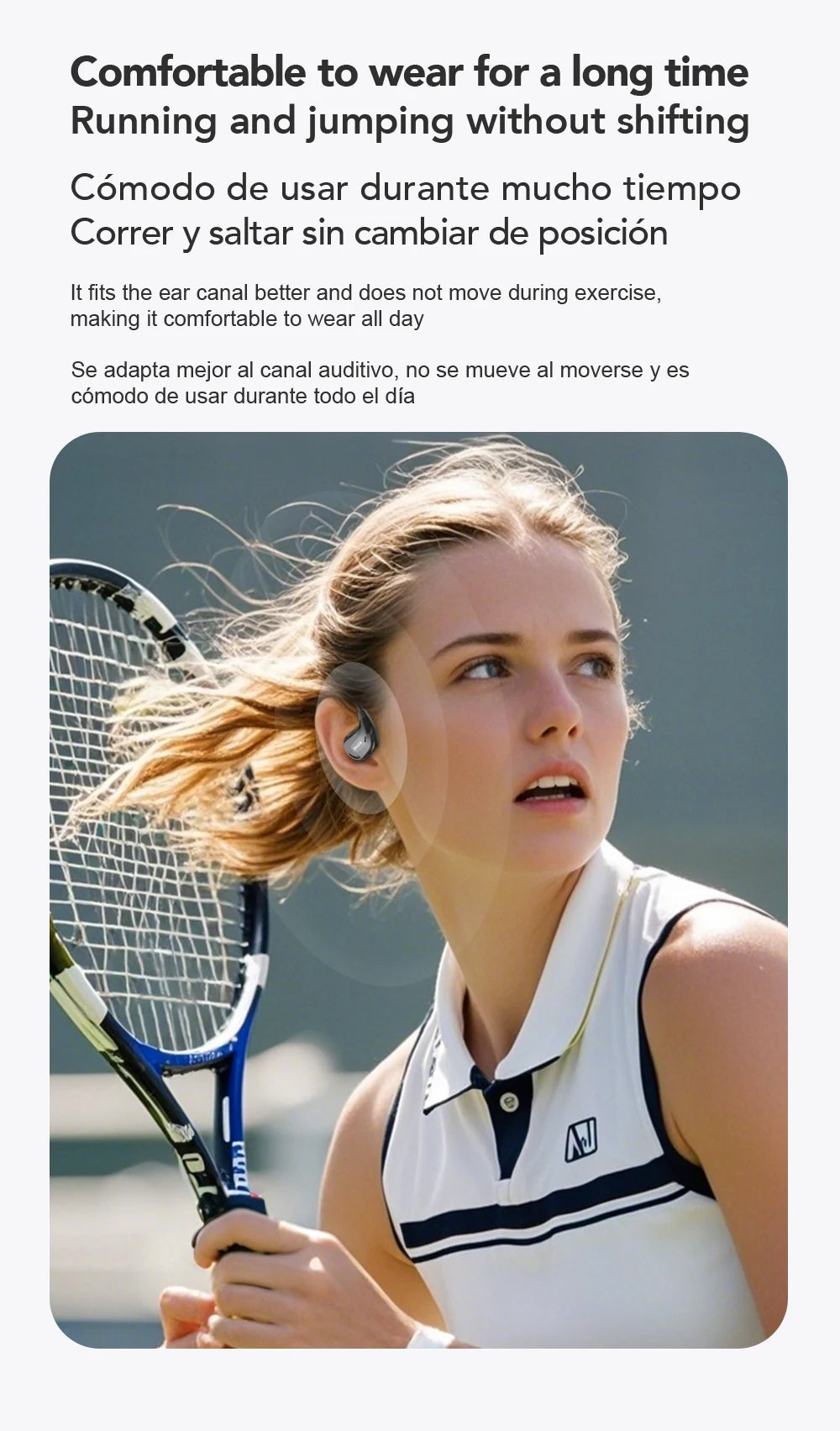 It fits the ear canal better and does not move during exercise,making it comfortable to wear all day.
