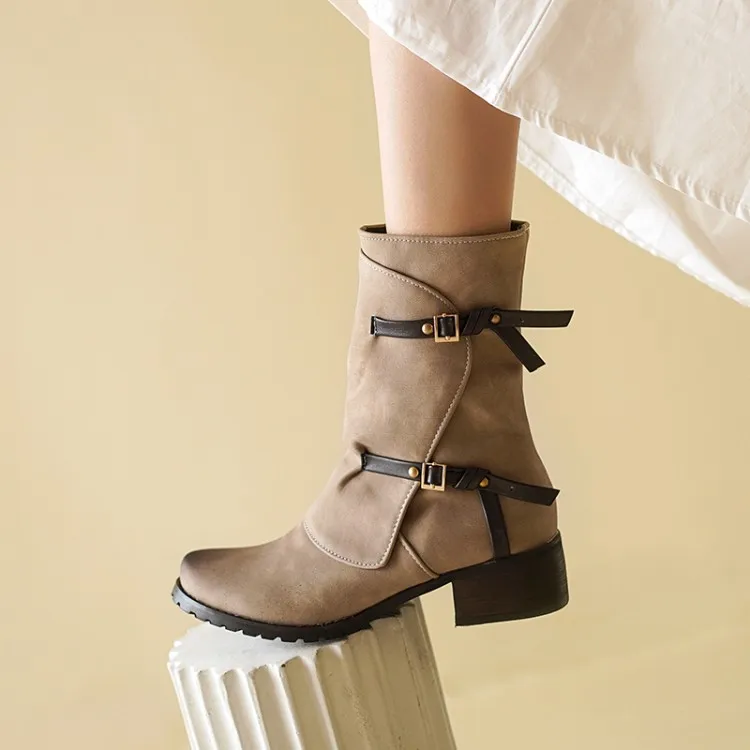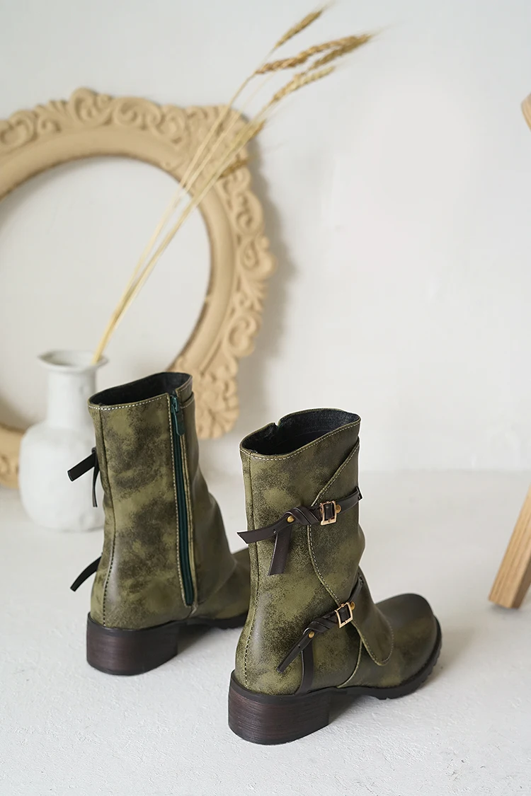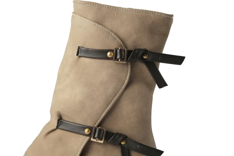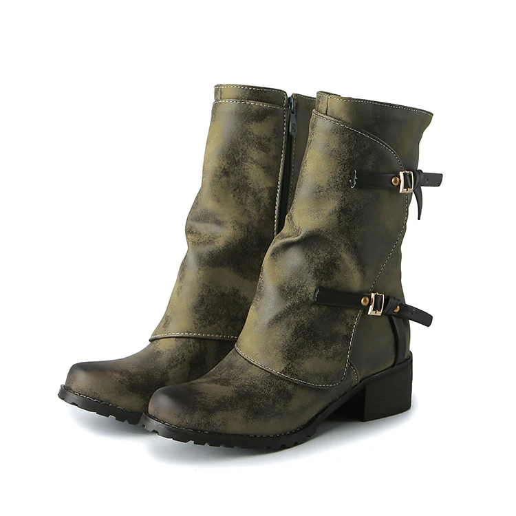 ZawsThia Winter women's military-style boot with buckle and low chunky heel.