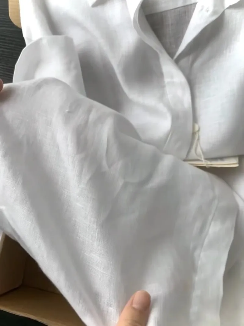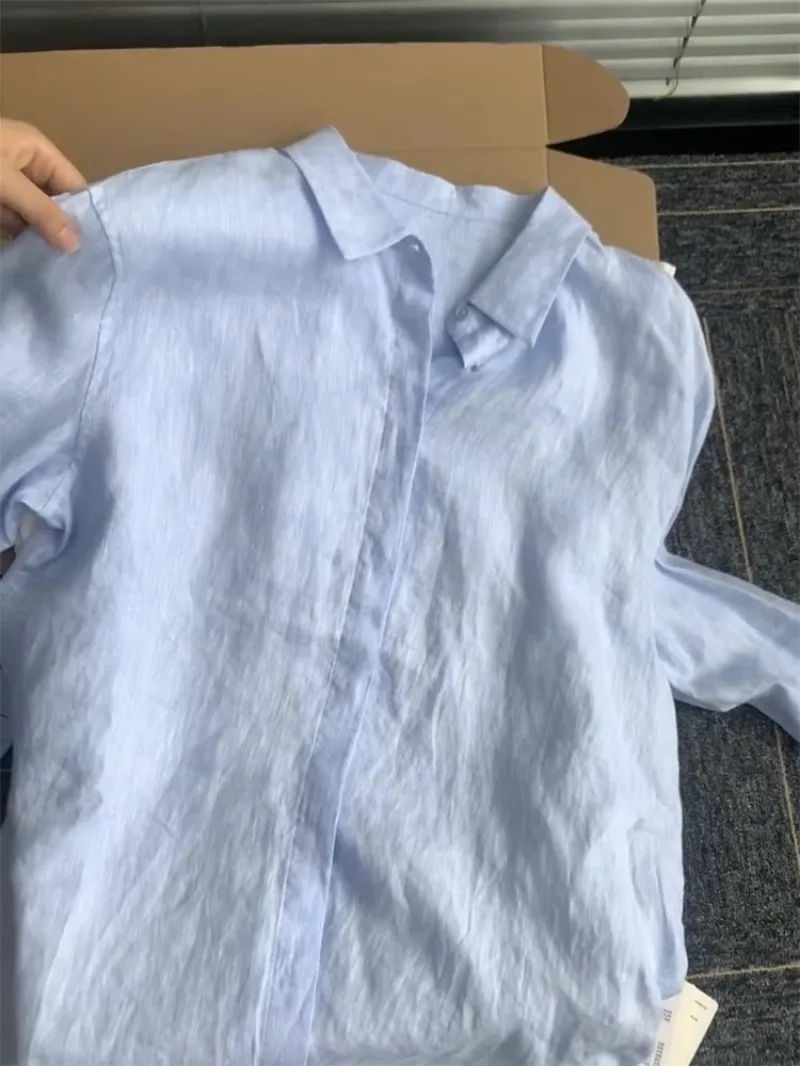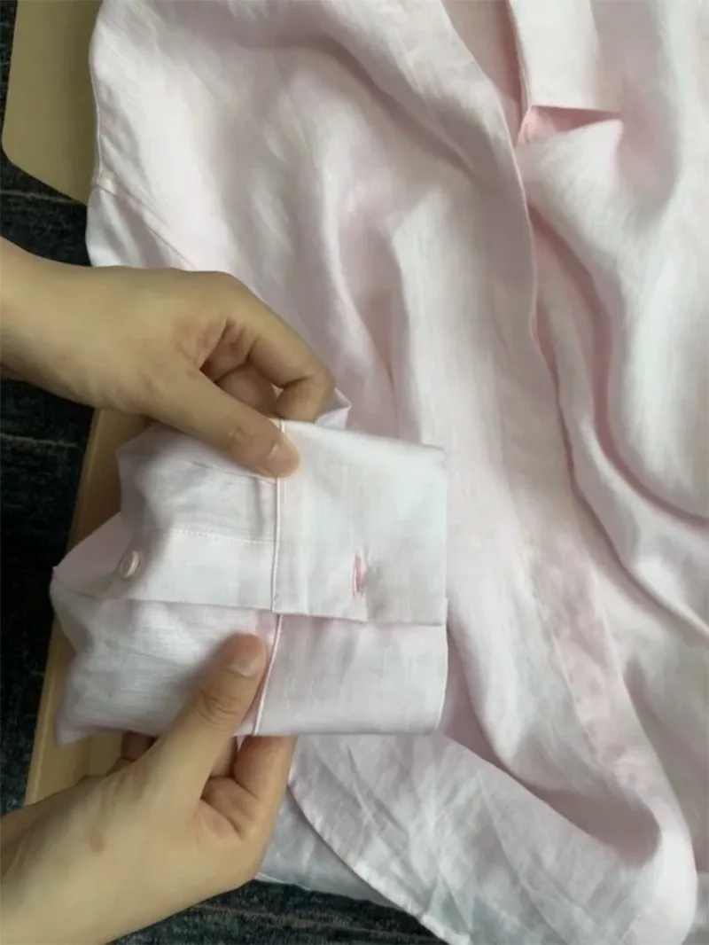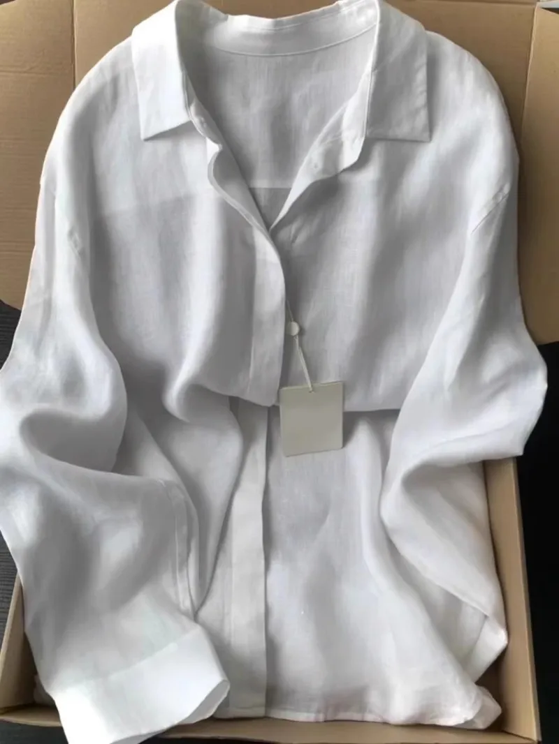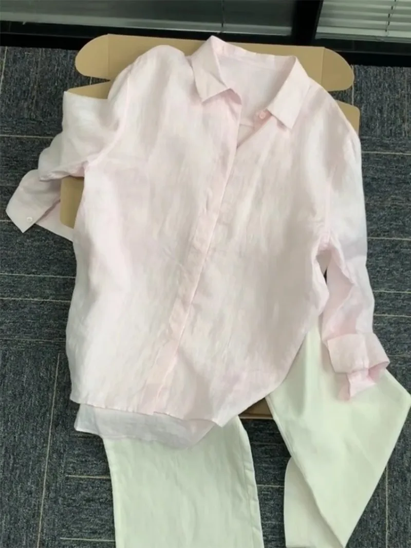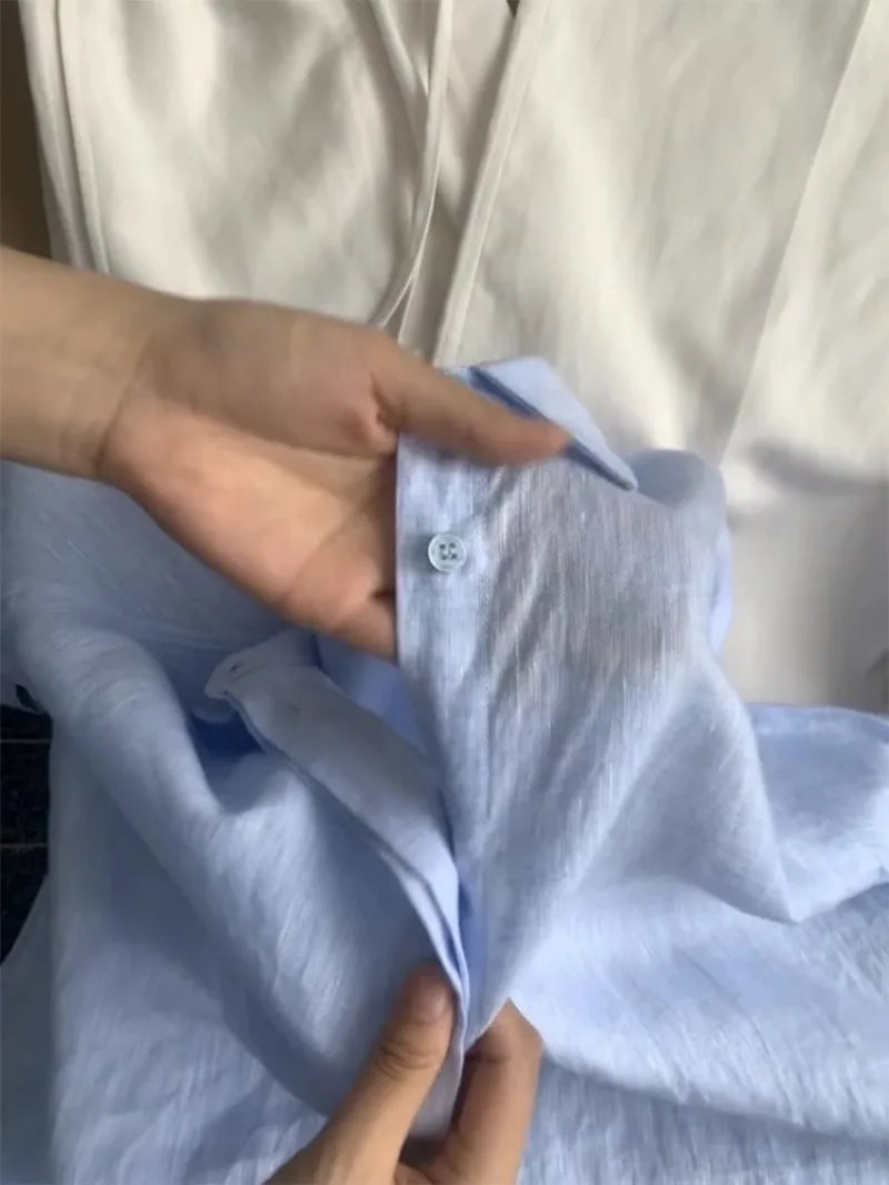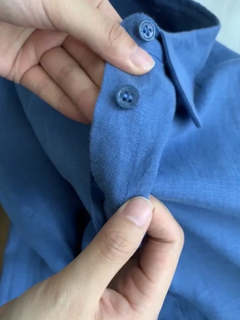 Casual Office Ladies Work Solid Color Linen Shirt Long.