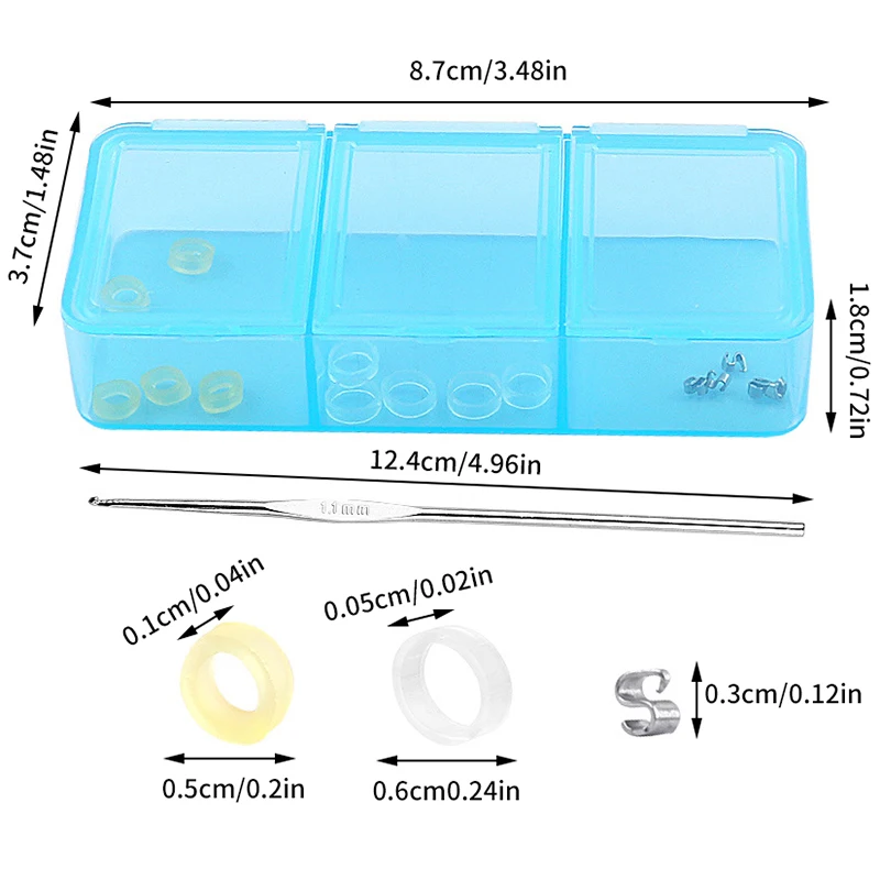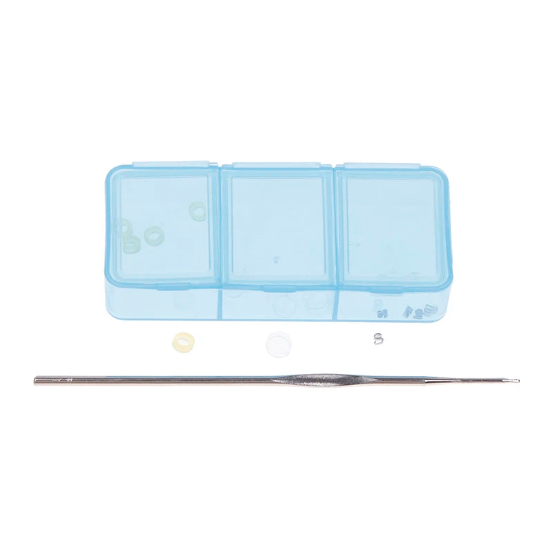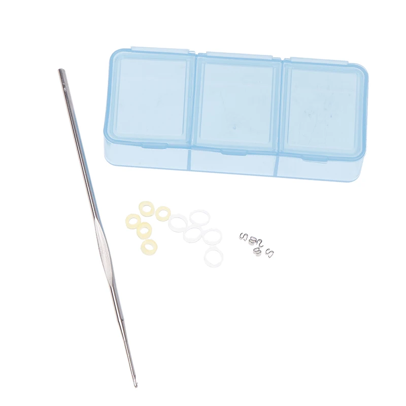 White rings*5, yellow rings*5, hooks*5, stainless steel crochet needle*1.